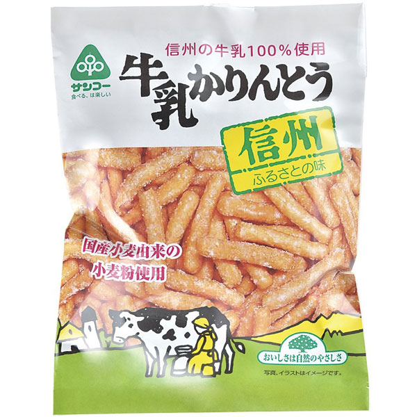 国産小麦粉を主原料に信州の新鮮な牛乳だけで練り上げたまろやかな風味のかりん糖です。