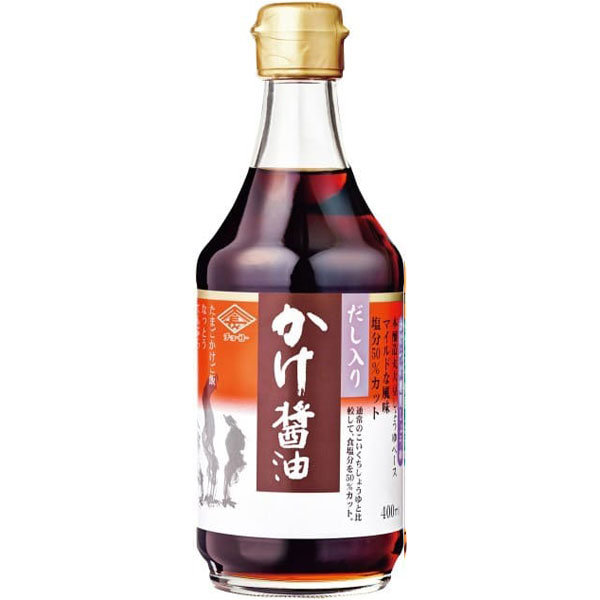本醸造しょうゆをベースに、かつお・こんぶ風味に仕上げた、マイルドで甘口タイプのかけ専用しょうゆです。