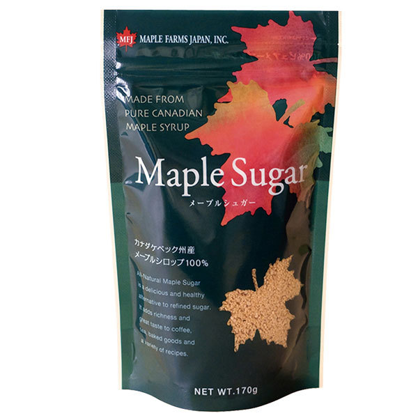新鮮なメープルシロップから水分を取り除いて顆粒状にしたメープルシュガー。メープルシロップ100%でやわらかな甘みとコクが特徴です。天然のミネラル成分もそのまま凝縮しています。砂糖の代わりに。