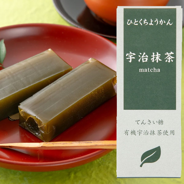 北海道産の白いんげん豆とてんさい糖の白あんに、京都府産有機宇治抹茶をたっぷり配合した、食べきりサイズのミニ抹茶羊羹です。茶師が吟味撰定した有機宇治抹茶を絶妙にブレンドし、抹茶本来の渋み・苦み・香りを引き立てました。