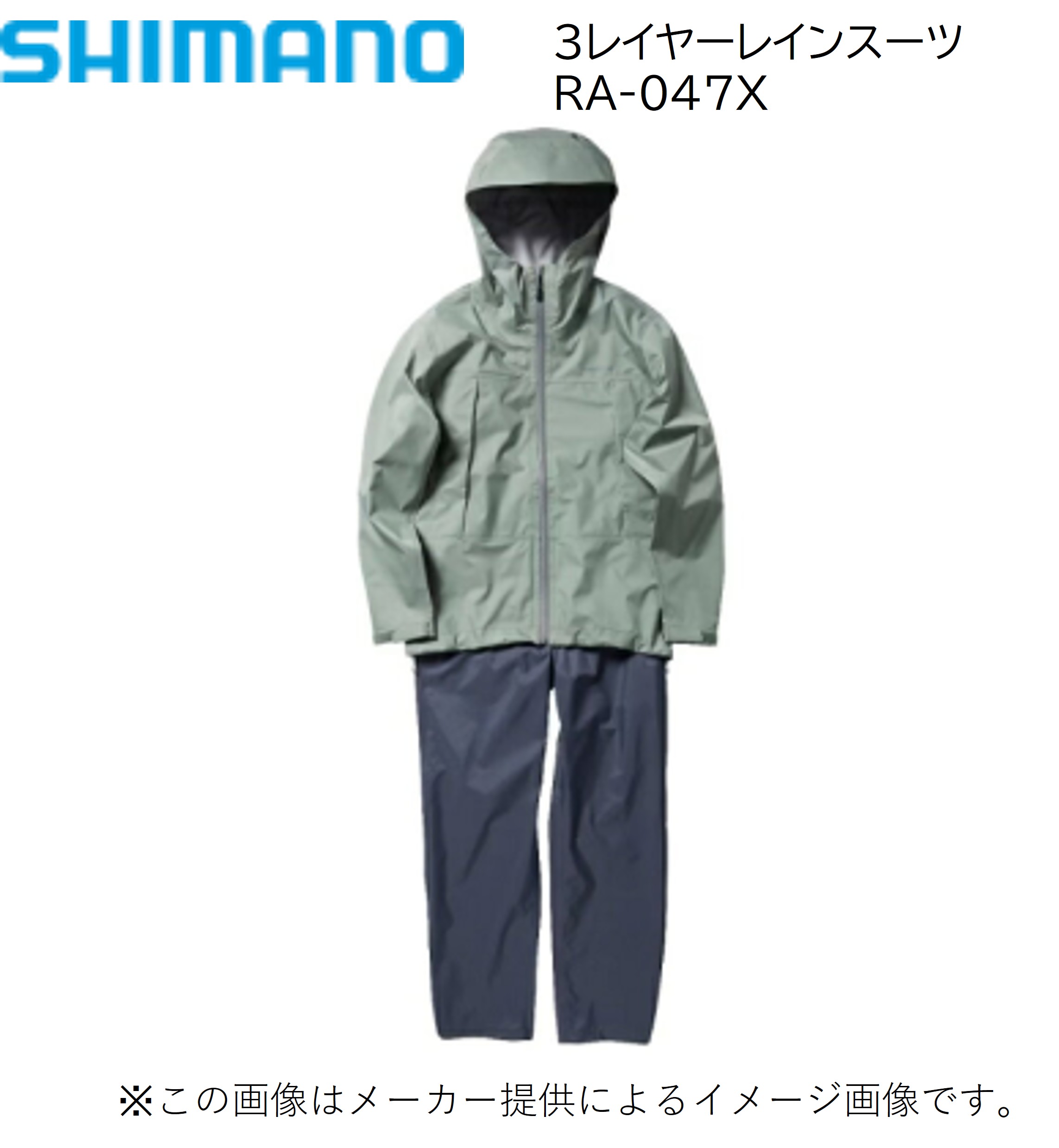 シマノ 3レイヤーレインスーツ セージグリーン Lサイズ (釣り衣類・レインスーツ・上下セット) (RA-047X) (生産終了商品) (別店舗発送商品)