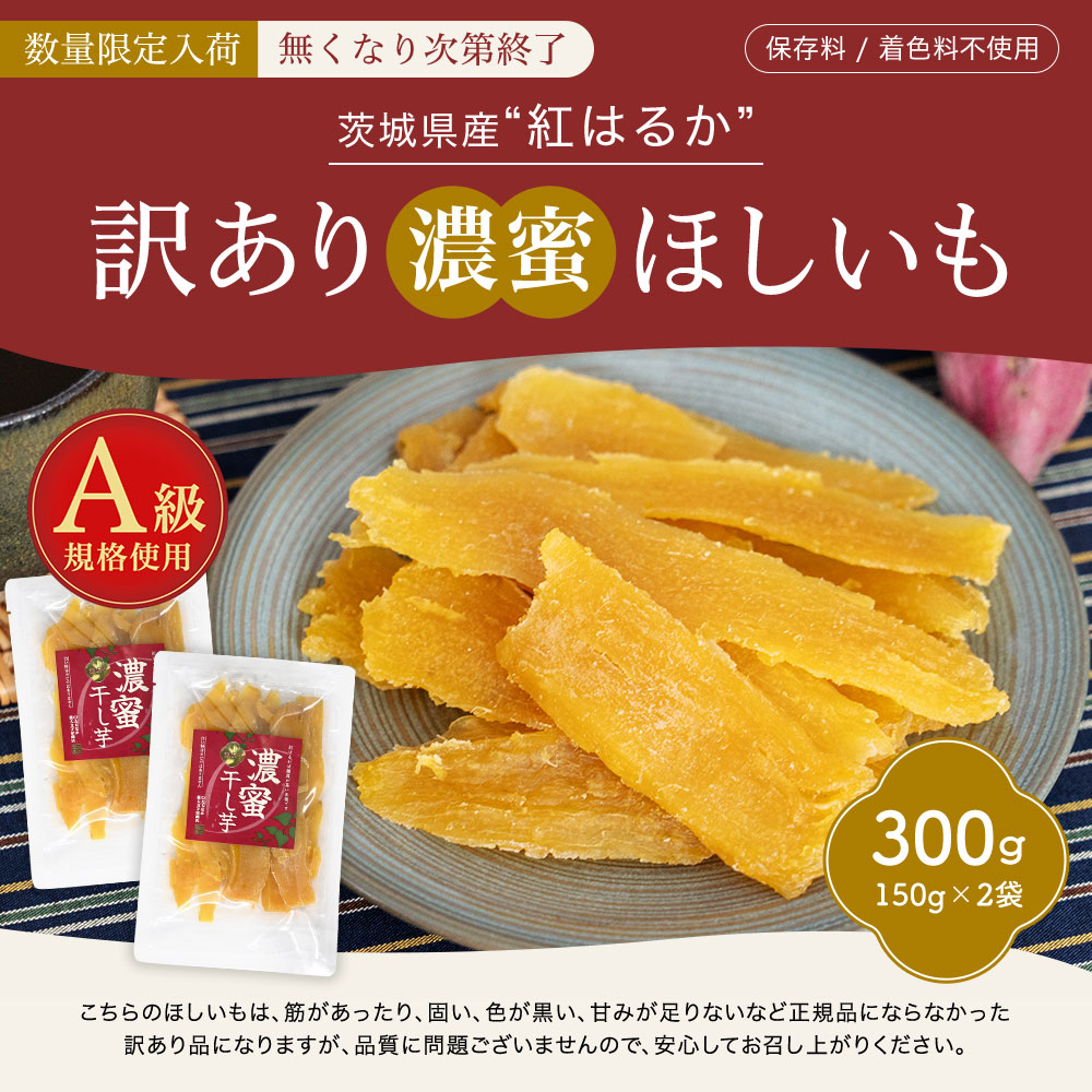 国産品 訳あり 国産干し芋 茨城県産 紅はるか 300g(150g×2袋) 送料無料 無添加 保存料不使用 着色料不使用 数量限定 爆買