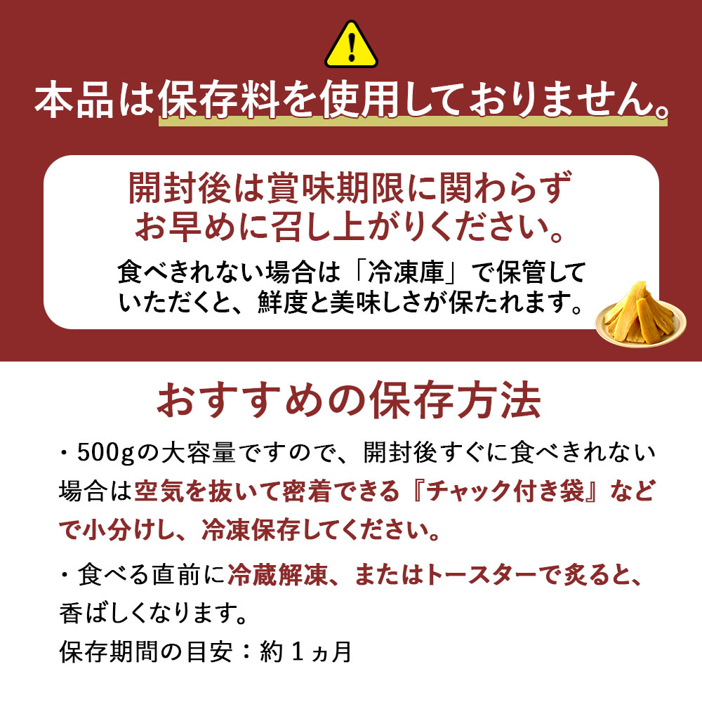 ■原料であるさつまいもは農産物の為、個体差があり繊維が多いものや少し硬いものも含まれる場合がございます。