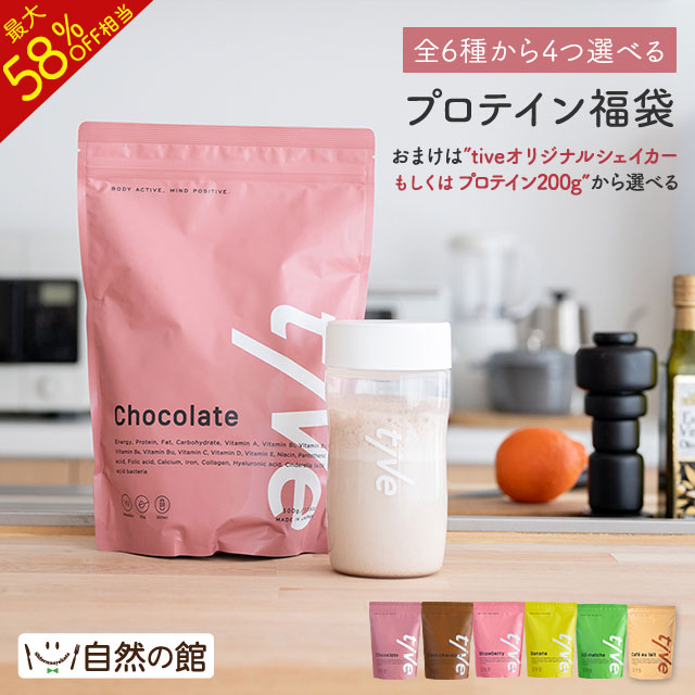 プロテイン 人工甘味料不使用 福袋 Wプロテイン tive(ティブ)選べる4個入り(500g×4) シェイカー付 爆買