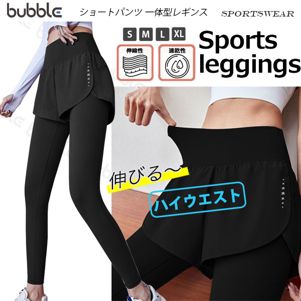 レギンス ショートパンツ 一体型 9分丈 レギンス 美脚 ハイウエスト ピラティス 単品 スポーツウェア ヨガ ランニング ウォーキング フィットネス ポケット付き