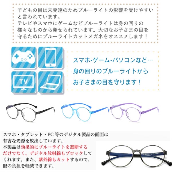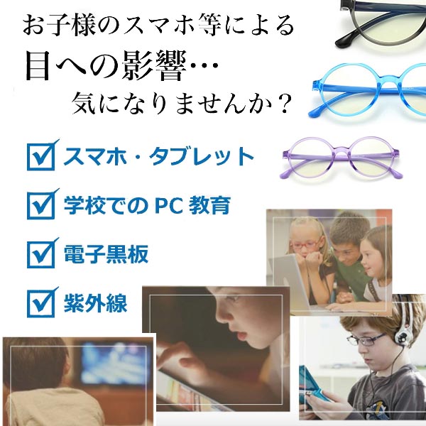 【キッズ用ブルーライトカットメガネのポイント】(度は入っていません)