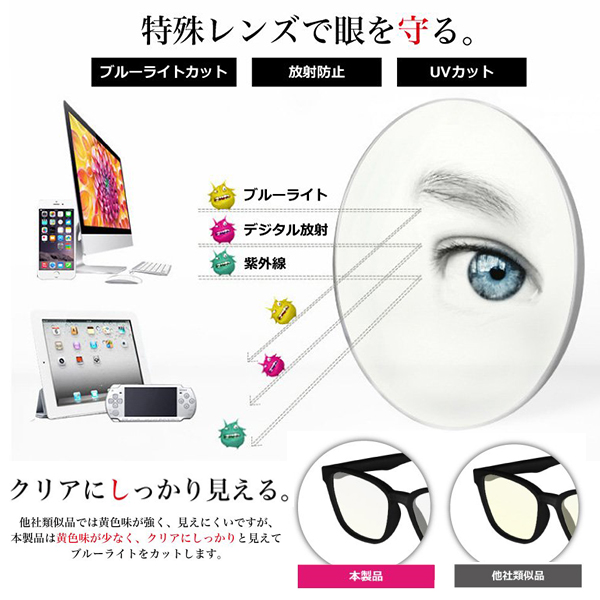 スマホ スマートフォン パソコン用メガネ UV 日焼け