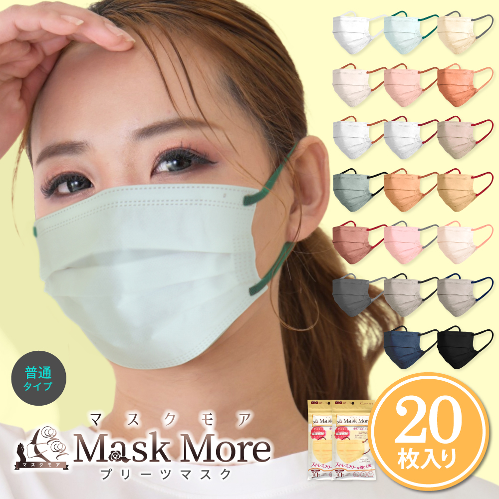 プリーツマスク 不織布マスク 立体 小顔マスク バイカラー マスク カラーマスク 不織布 おしゃれ マスクモア マスク 男性用 女性用 20枚入り
