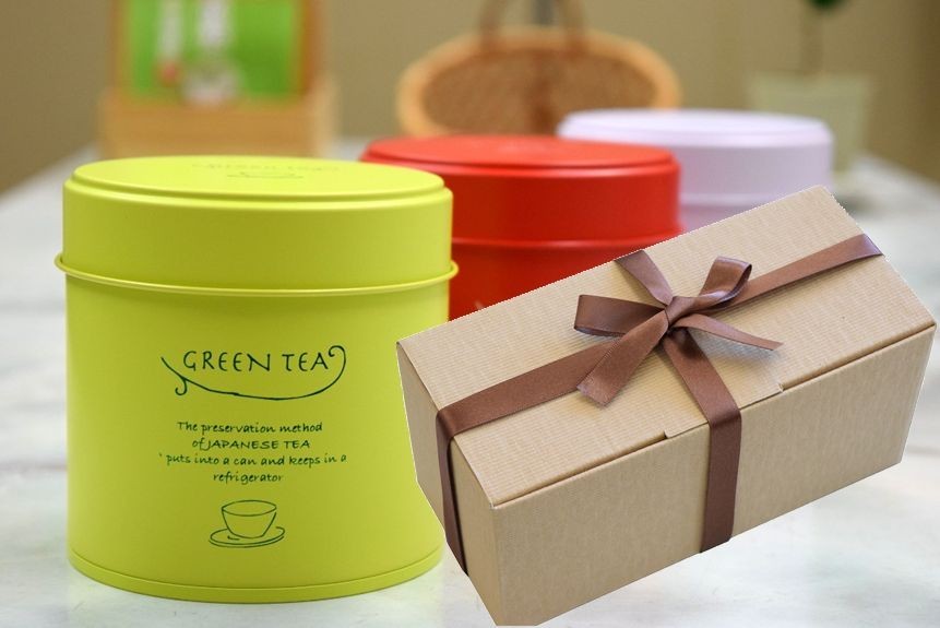 一番お茶の味がのる八十八夜摘み掛川茶、新芽付近のうま味の詰まった茎をこんばり焙煎した茎ほうじ茶、日本独自の紅茶用品種べにふうきで作った和紅茶のティーバッグから2種類を選べる缶入りギフトセット。