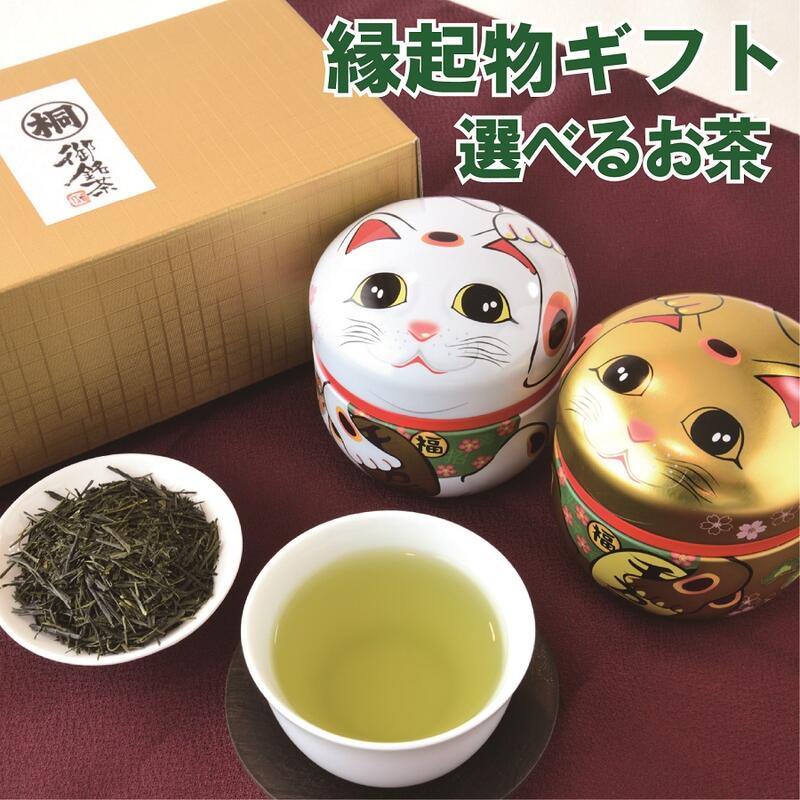 お好みの静岡茶を縁起物の「招き猫のお茶缶」にお詰め致します。