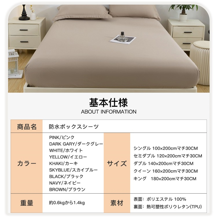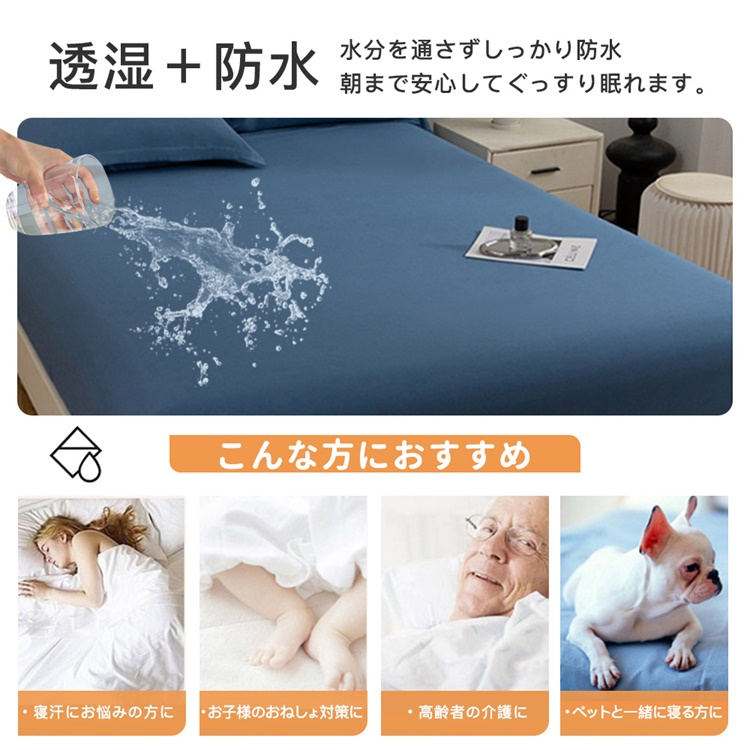 ボックスシーツ 通気性 防水 シングル ダブル セミダブル クイーン キング 透湿 無地 簡単 快適 敏感肌 やわらか 可愛い 敷布団 おねしょ 寝汗 高齢者