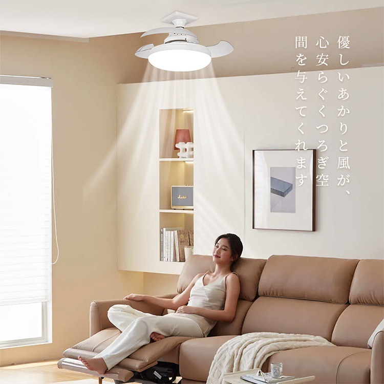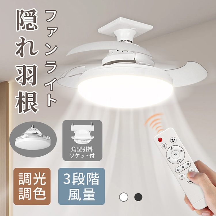 シーリングファンライト 扇風機 大風量 ファンライト 調色調光 LED ファン付き照明 風量3段階 角度調節 隠れ羽根 照明器具 脱衣所 洗面所 空気循環