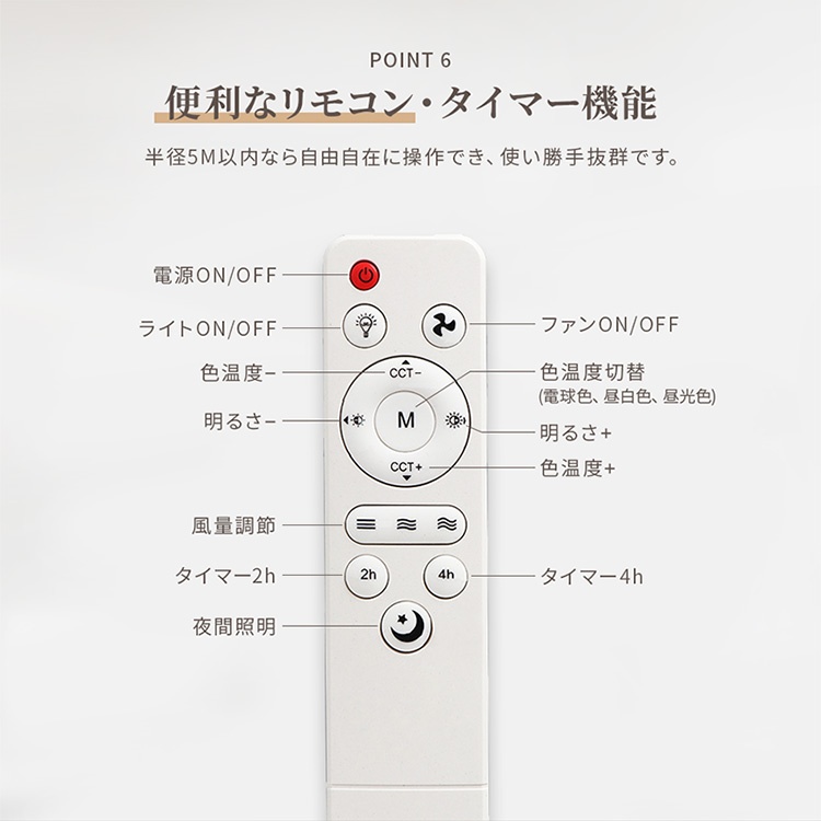 POINT6 遠隔操作ができる便利なリモコン付き