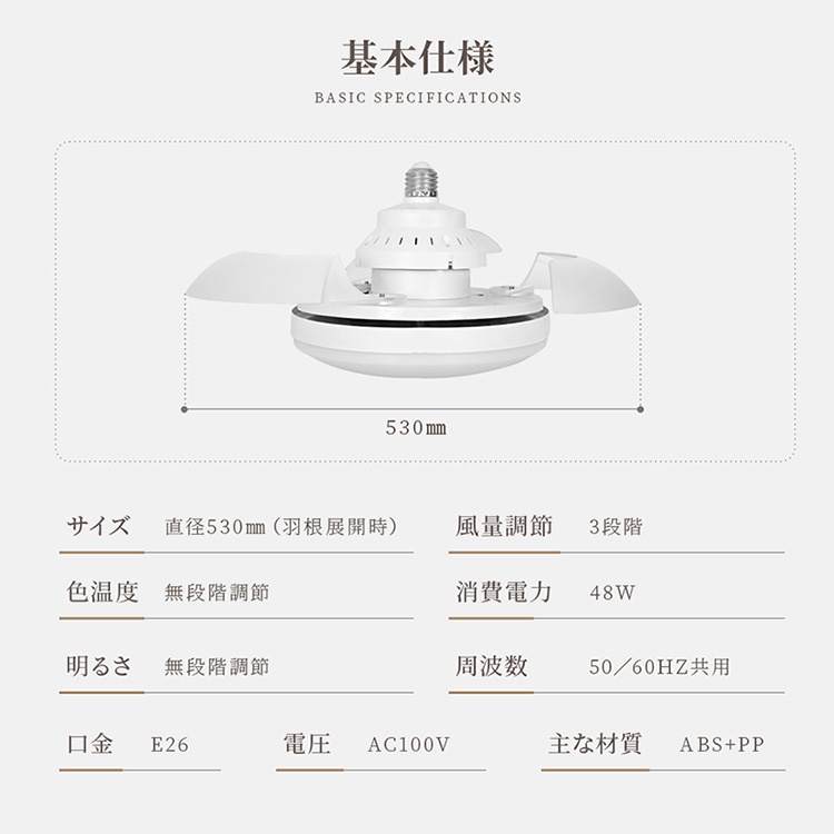 サイズ 直径530mm(羽根展開時)