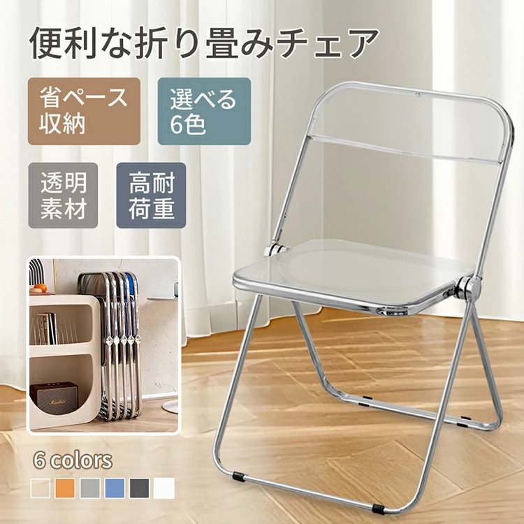 折り畳み椅子 クリアチェア スツール 透明 軽量 頑丈 会議椅子 椅子 シンプル 省スペース 一人暮らし 北欧 おしゃれ 家具 人気