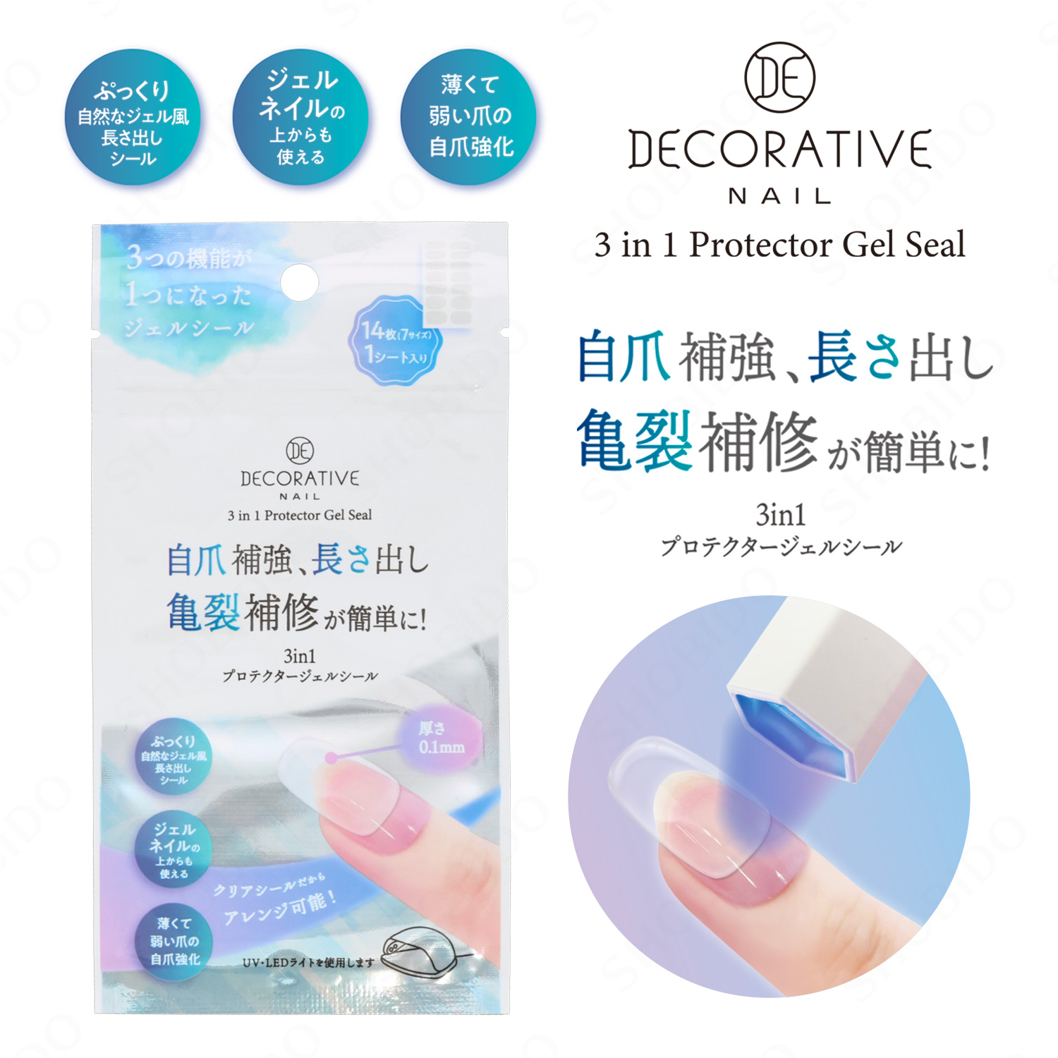 自爪補強、長さ出し、亀裂補修が簡単に! ・ぷっくり自然なジェル風長さ出しシール