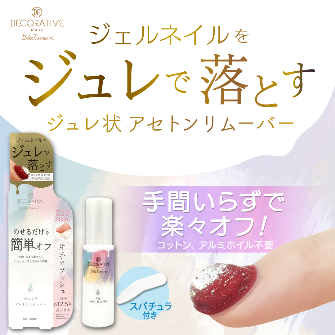 アセトンリムーバーをジュレ状にすることで手順が減りラクにオフ出来る。