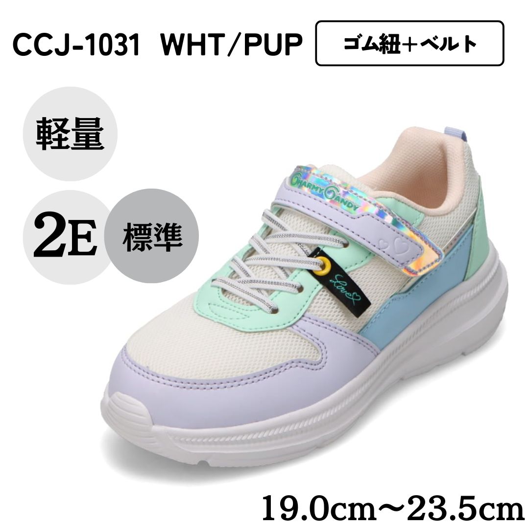 ランニングシューズ キッズ 軽量 着脱簡単 ゴム紐 ベルト 運動 通学 スニーカー ホワイト×パープル チャーミーキャンディ CCJ-1031 爆買