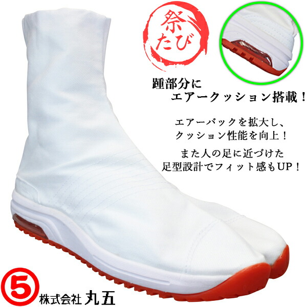 商品名:丸五 マルゴ MARUGO エアージョグ V 6枚 白 祭り足袋 メンズ 祭りたび 歩きやすい 疲れにくい エアクッション エアソール 衝撃吸収 足が痛くなりにくい お祭り用 祭事