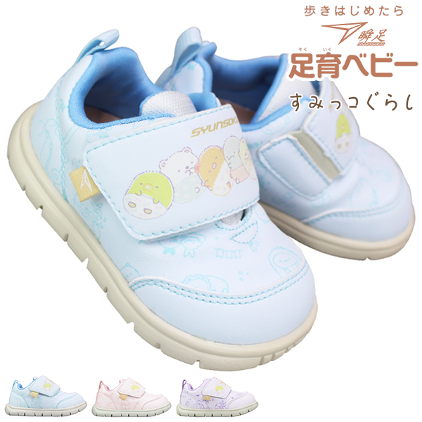 瞬足 足育 ベビーシューズ すみっコぐらし JB113 SJB1130 サックス・ピンク・ラベンダー 12.5cm〜15cm ベビー キッズ シューズ スニーカー 赤ちゃん靴