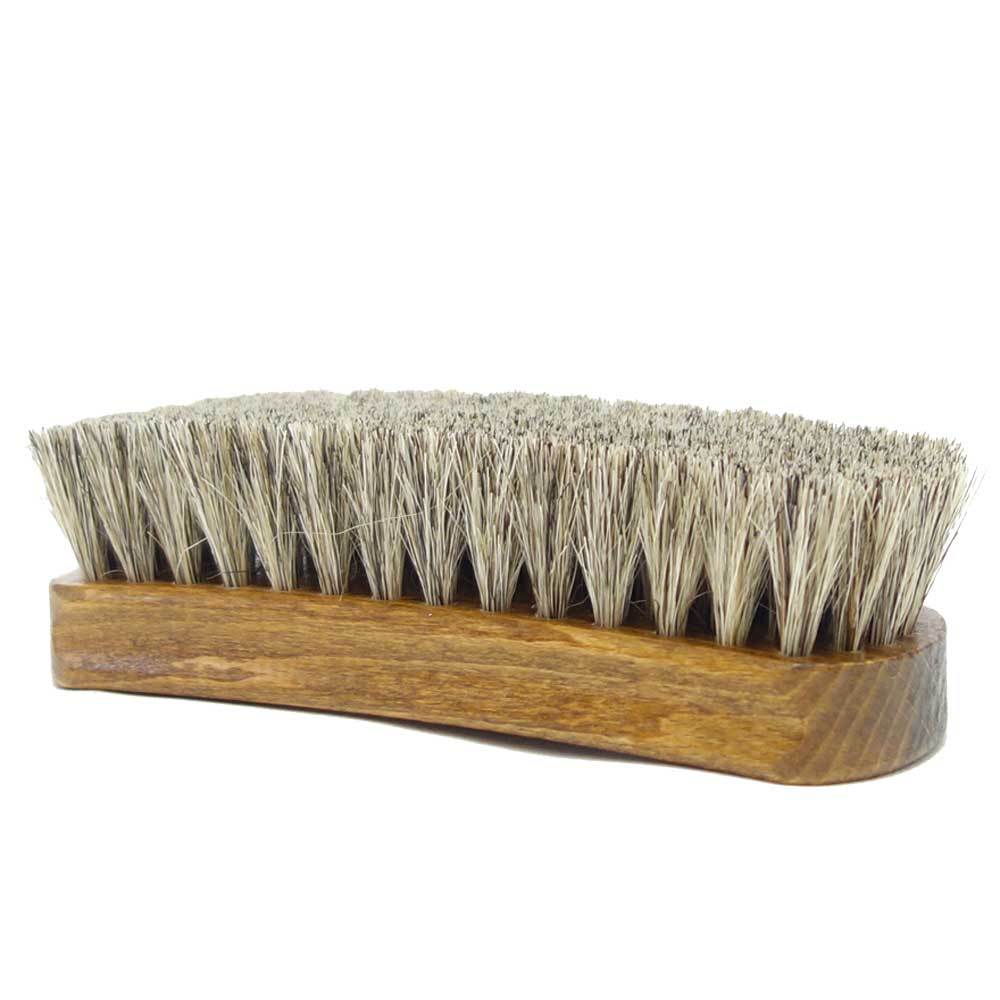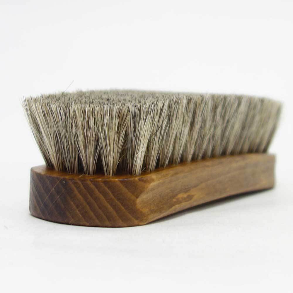 | ホコリ落とし&仕上げ用ブラシ。毛先の柔らかいブラシですのでブーツ、バッグ、レザージャケットのホコリ落としに最適です。クリームの塗布後にブラッシングをするとツヤを出してさらっとした仕上がりになります。 |