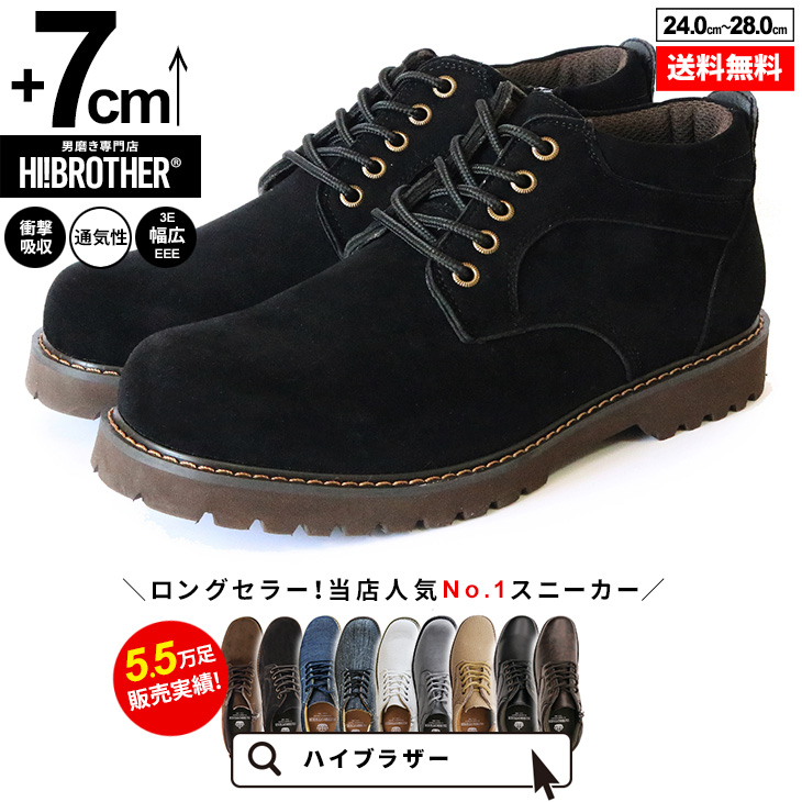 シークレットシューズ メンズ 7cmアップ ハイブラザー スニーカー カジュアルシューズ 通気性 耐久性 幅広3E 軽量 人気No.1モデル ブラック ブラウン 送料無料