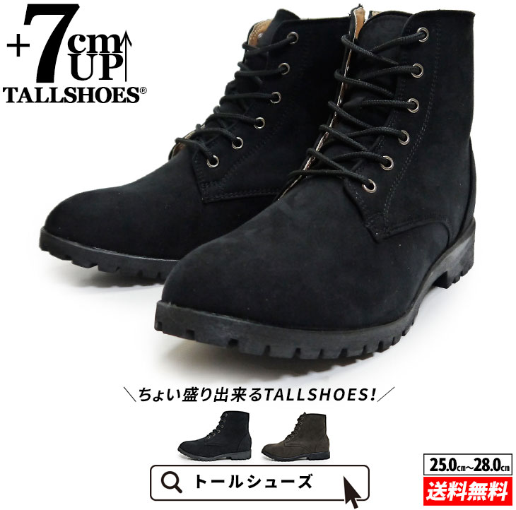 シークレットシューズ ブーツ メンズ 7cmアップ TALLSHOES トールシューズ スエード レースアップ 軽量 防滑 大人カジュアル 黒 ブラック 人気モデル 送料無料