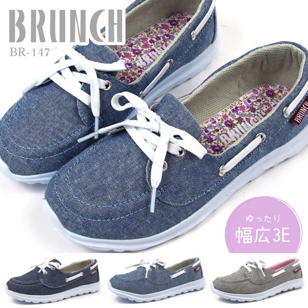 BRUNCH ブランチ デッキシューズ レディース 全3色 BR-147 カジュアル フラット 軽量 ゆったり 幅広 3E 快適 紐 女性 女子 婦人 スニーカー レースアップ