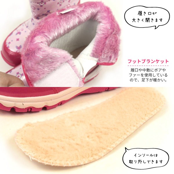特徴 ディズニーの「塔の上のラプンツェル」、「ちいさなプリンセス ソフィア」のキッズ用ウインターブーツです。