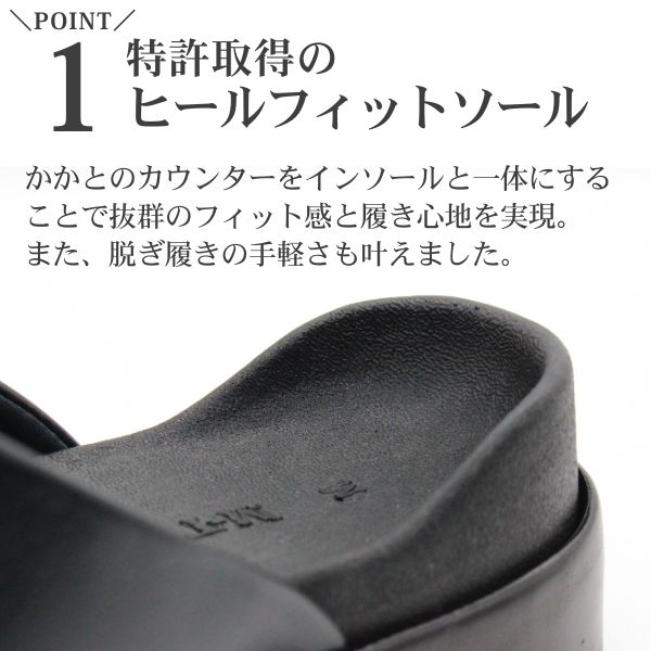 かかとのカウンターをインソールと一体にすることで抜群のフィット感と履き心地を実現。また、脱ぎ履きの手軽さも叶えました。