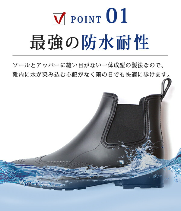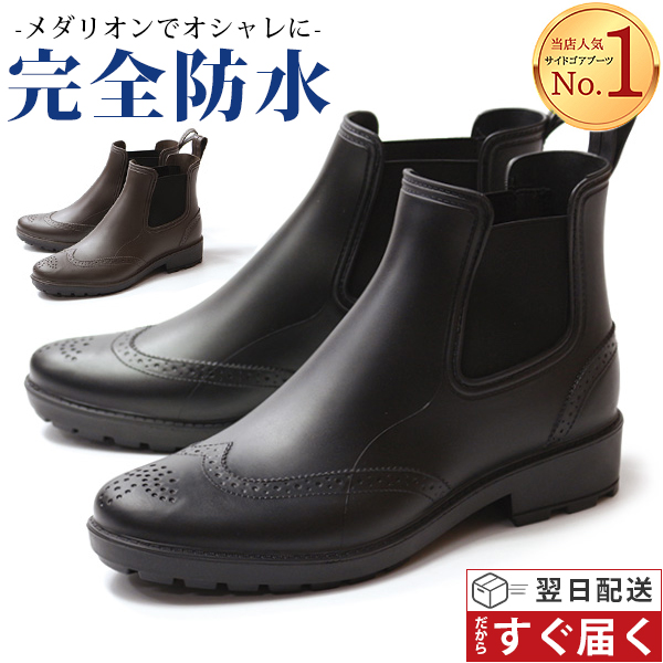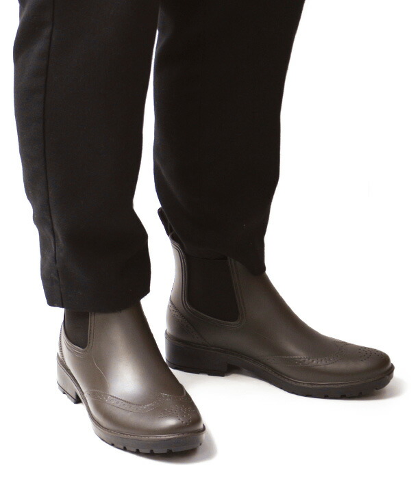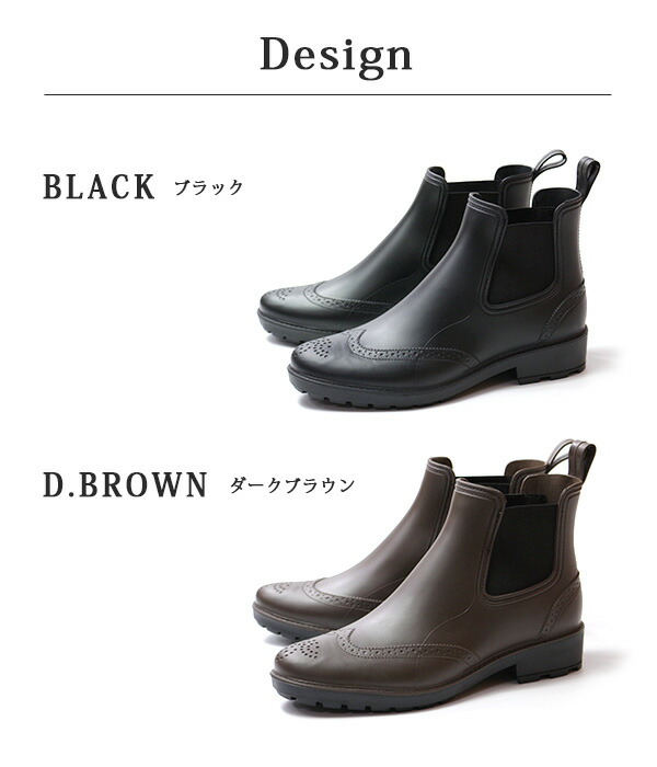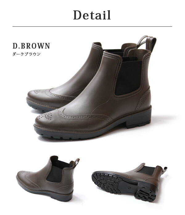 | ・スーツにもカジュアルにもタイプできる、ウィングチップデザインが魅力!サイドゴアショートレインブーツです。 ・定番人気のサイドゴアタイプで脱ぎ履きもしやすく足にフィットして歩きやすい!一体成型の完全防水なので靴の中に水が入らず大雨でも安心! ・防滑ソールで滑りにくく、機能性もバツグンの優秀アイテムです。乗馬用ブーツやジョッパーズブーツとして牧場等で使用されている方もいらっしゃいます。 |