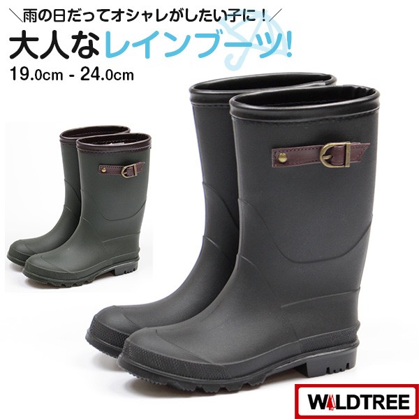 レインブーツ キッズ 子供 長靴 黒 ブラック カーキ 完全防水 雨の日 おしゃれ シンプル WILDTREE 2015