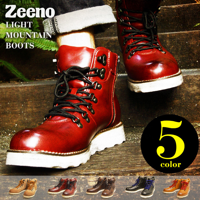 【Zeeno】より大ヒット中ライトマウンテンブーツ。アッパーはビンテージ(汚し)加工を施し、独特の存在感を演出。換えヒモ付で気分やコーデに合わせて変更OK!内側ジッパーで着脱簡単。焦し加工のソールは軽くてクッション性も◎!※付属されたアップインソールを使用する際は、靴との接地面に両面テープをご使用ください。尚、両面テープは同封されておりません。