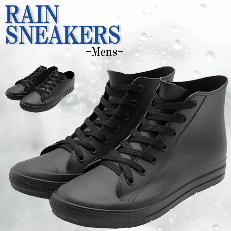 レインシューズ メンズ スニーカー 防水靴 撥水 長靴 黒 紺 ハイカット ローカット 梅雨対策