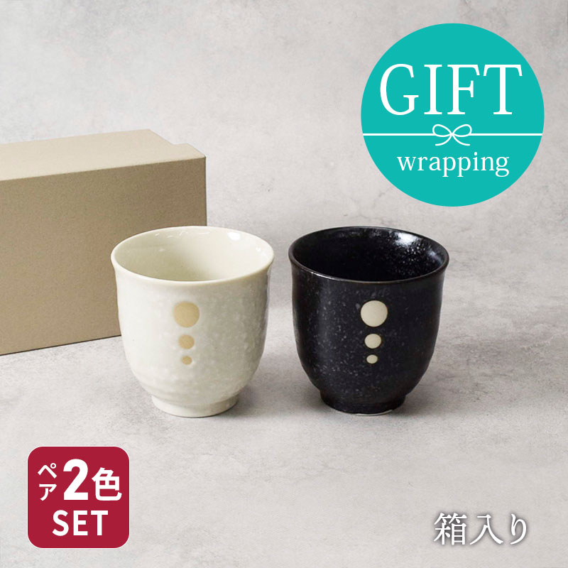 夫婦湯呑 箱入り 220cc 水玉 白×黒 湯呑み 湯飲み ゆのみ 湯のみ コップ カップ 茶器 食器 ドリンクウェア ギフト食器 ギフト 贈り物 プレゼント ペアセット 新