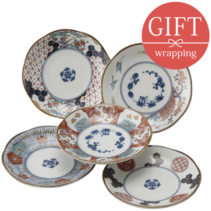 小付5枚セット 11cm 染錦古伊万里 化粧箱入り ギフト ボウル 鉢 和食器 おしゃれ お皿 皿 食器 小鉢 取り鉢 おかず小鉢 前菜鉢 和柄 和風 柄物 ギフト食器