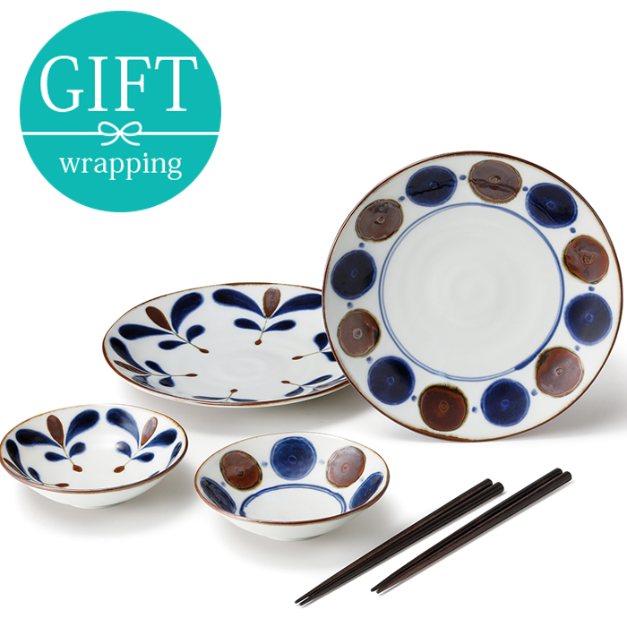 ペア食器6点セット 南風 化粧箱入り ギフト プレート お皿 皿 食器 和食器 おしゃれ 大皿 小鉢 箸 柄物 やちむん風 沖縄食器風 ギフト食器 ギフト 贈り物