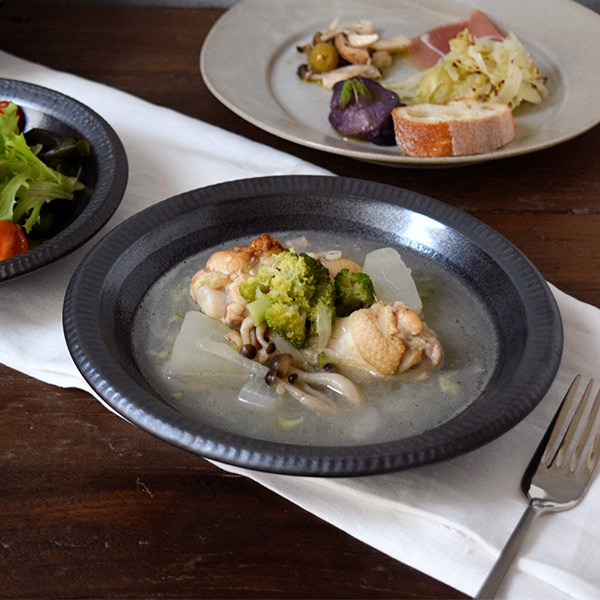 こちらは具だくさんのスープに最適なサイズ。シチューとも相性抜群です。そのほか、家族分の煮物鉢としても。