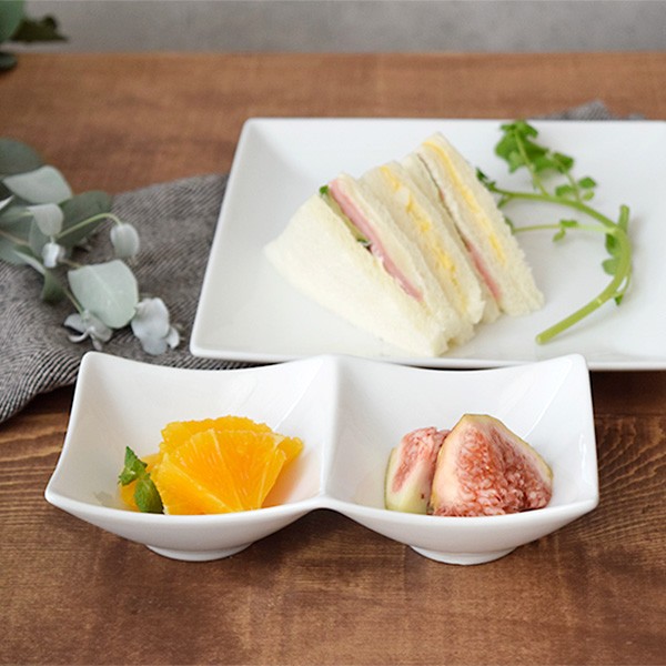 ![]() 仕切りの付いた角型ボウルは、ちょっとした料理や前菜を盛り付ける副菜鉢、煮物鉢として大活躍。 種類の違うおかずを盛り付ければ、見た目もボリュームアップできますよ。 アイスカップやデザートカップとして、フルーツやアイスクリーム、カットケーキなどをそっと盛り付ければ、甘いものをちょっとつまみたい時にもぴったり。いつものティータイムもこれがあれば、カフェのようなお洒落な食卓が演出できちゃいます。 角型のお皿は、複数並べてもうるさくならず、すっきり収まるのも良いところ。 コーディネートもスタイリッシュかつスマートに、テーブルを飾ってくれるので、おもてなしや来客時の雰囲気作りにも一役かってくれますよ。 |