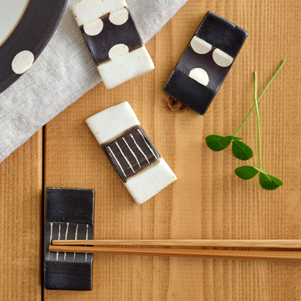 ![]() 和洋問わず使える、自然な風合いの箸置き。 土物ですので、和のイメージが強いかもしれませんが、柄の水玉やボーダーが、ナチュラルな雰囲気も与えてくれます。 サイズも箸置きとして邪魔にならない大きさです。 気どらずに、日々の食卓をおしゃれに演出したい、おしゃれなアイテムが欲しい、という方にオススメのデザインですよ。 柄をそろえたり、子供は水玉・大人はボーダーと決めたりと、組み合わせはお好きにどうぞ。 |