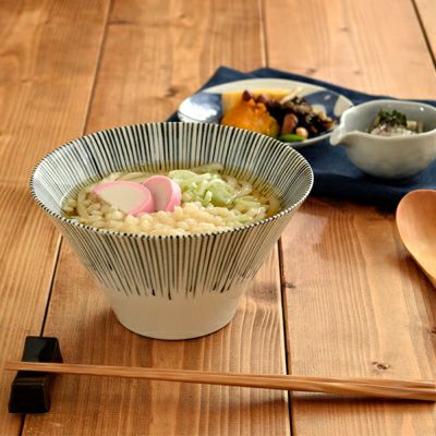 ![]() 高台(底の立ち上がり部分)や丸みがなく、スマートな台形型のどんぶり。 白地に藍で描かれた十草模様の線は、手描きのようでおしゃれ。それぞれ濃淡があり、爽やかな中にも味わい深さを感じさせます。 十草とは縦縞の模様で、日本で古くから親しまれてきた伝統的な模様のひとつ。 その十草模様と昔から愛された藍色で彩られたこの器は、ご飯やうどん、煮物など普段の和の食卓にぴったりです。 おしゃれで上品なデザインなので、ササッと作ったおかずも盛り付けるだけで、雰囲気のある一品にしてくれますよ。 |