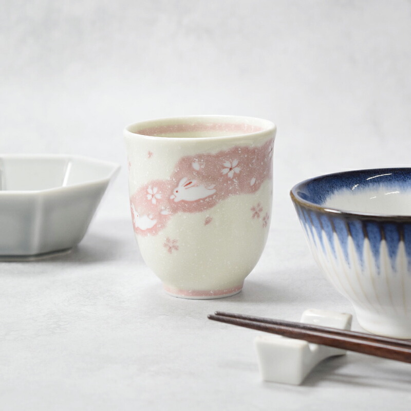 湯呑 210cc 淡雪うさぎ ピンク アウトレット 湯呑み 湯飲み ゆのみ 湯のみ 和食器 おしゃれ かわいい コップ カップ 茶器 食器
