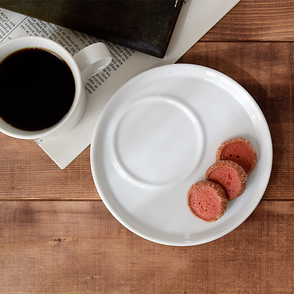 15.5cmサイズの中皿は、ドリンクを乗せればカップ&ソーサーのようにお使いいただけます。角砂糖やティースプーン、焼き菓子などを添えることができますよ。来客時にも重宝しそうですね。