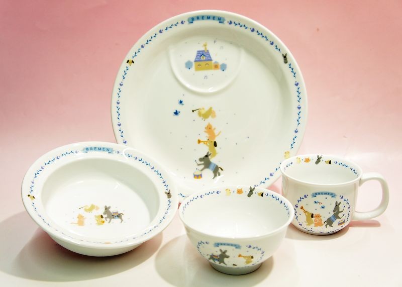 ●商品名:ブレーメン子供食器・幼児セット[ 4937432498418 ]NARUMI(ナルミ・鳴海製陶) ●カテゴリ:ブレーメン [ ナルミ子ども食器 ブレーメンの音楽隊 ] 子ども食器セット(ネーム無し)