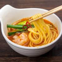 〆用のちゃんぽん麺は福岡県産小麦ラー麦100%です。もつや野菜のうま味たっぷりのスープをを最後までお楽しみいただけます。