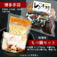福岡博多の食文化の代表もつ鍋を令和発祥の地古都大宰府よりお届けいたします。これから話題となる新商品の冷たいまま食べられる手羽をセットにいたしました。