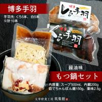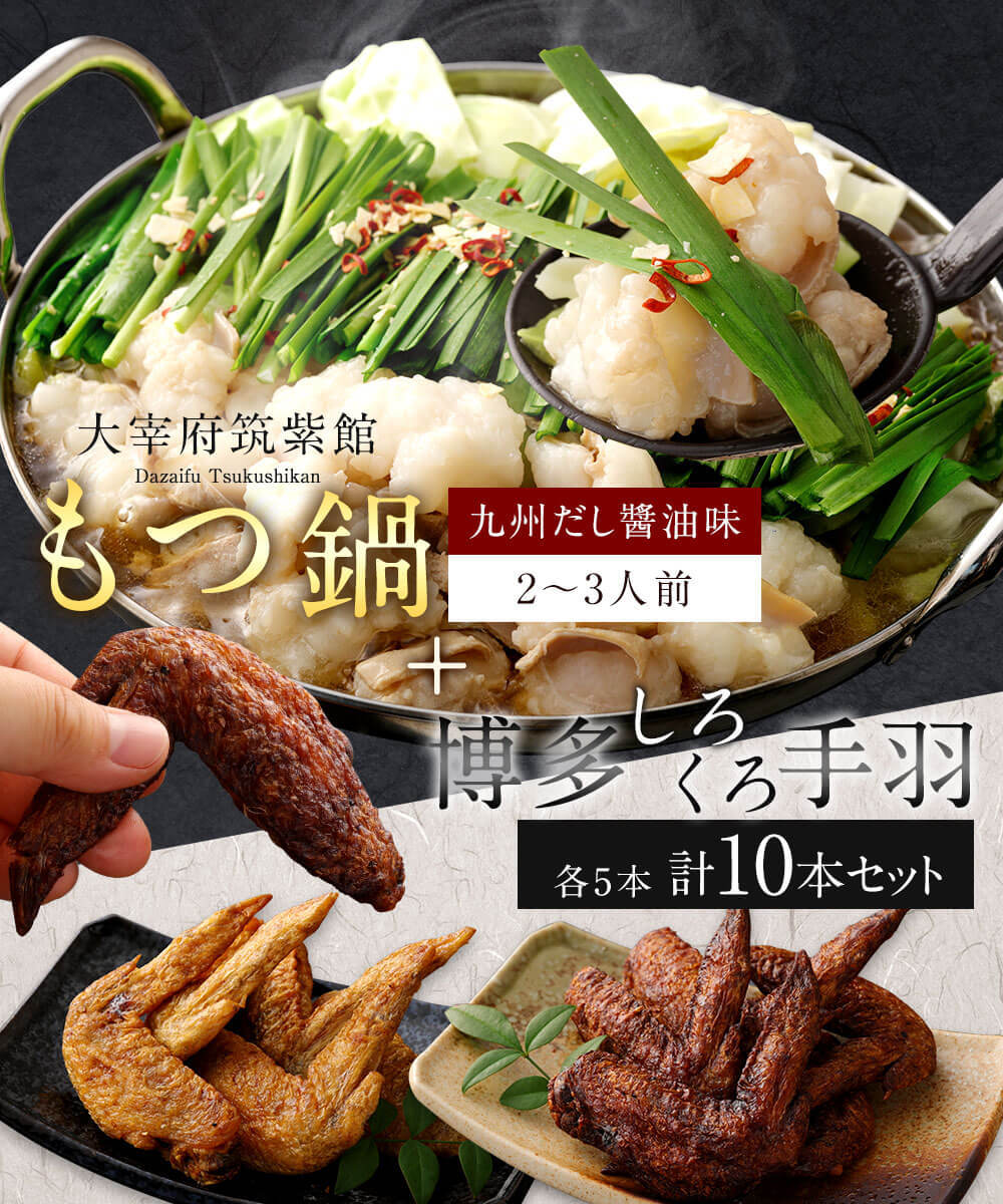 ■大宰府筑紫館もつ鍋九州だし醤油味(2-3人前)+博多くろ・しろ手羽各5本セット
