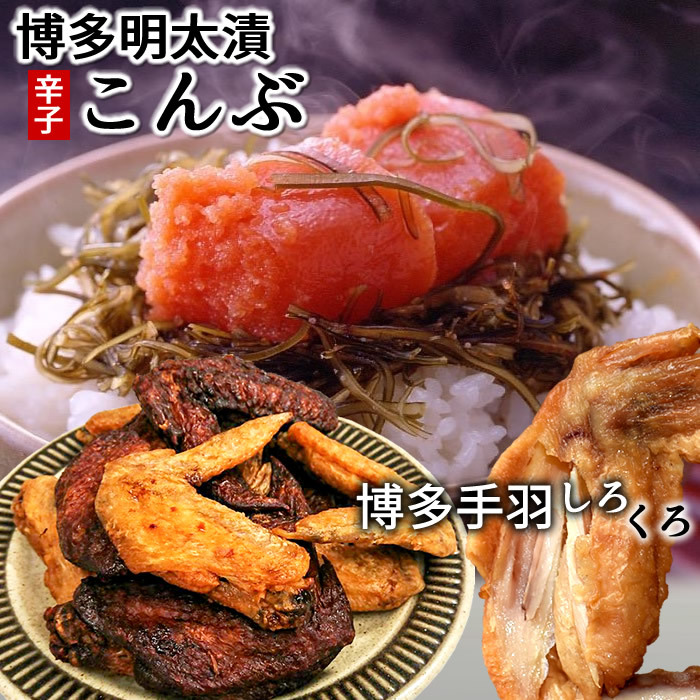 博多明太漬うまか辛子昆布×1+はかた一番どり使用くろ・しろ手羽各5本入りセット