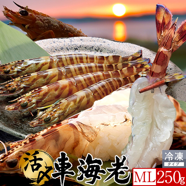 車海老 天草 冷凍 活き〆 ML 250g[8-12尾] 車えび 刺身用 焼きえび 本場熊本県 養殖 高級くるまえび 島育ち車蝦[産直食品 お祝いギフト]
