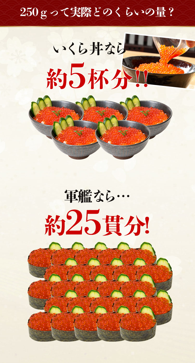 大粒で皮がしっかりしている鮭いくらを使用。